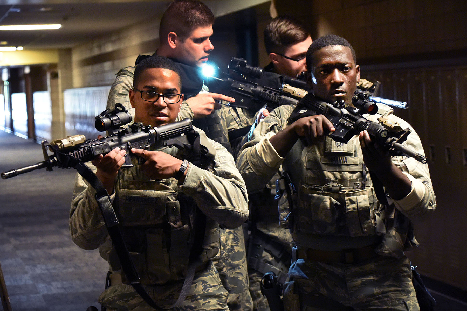 The 184th Security Forces Squadron provides on-base security and law enforcement. These warriors are responsible for protecting Airmen and resources, defending air bases around the globe and training military members on the use of small arms. During domestic operations, the squadron provides support to civilian law enforcement agencies in response to natural or man-made disasters, and civil unrest.