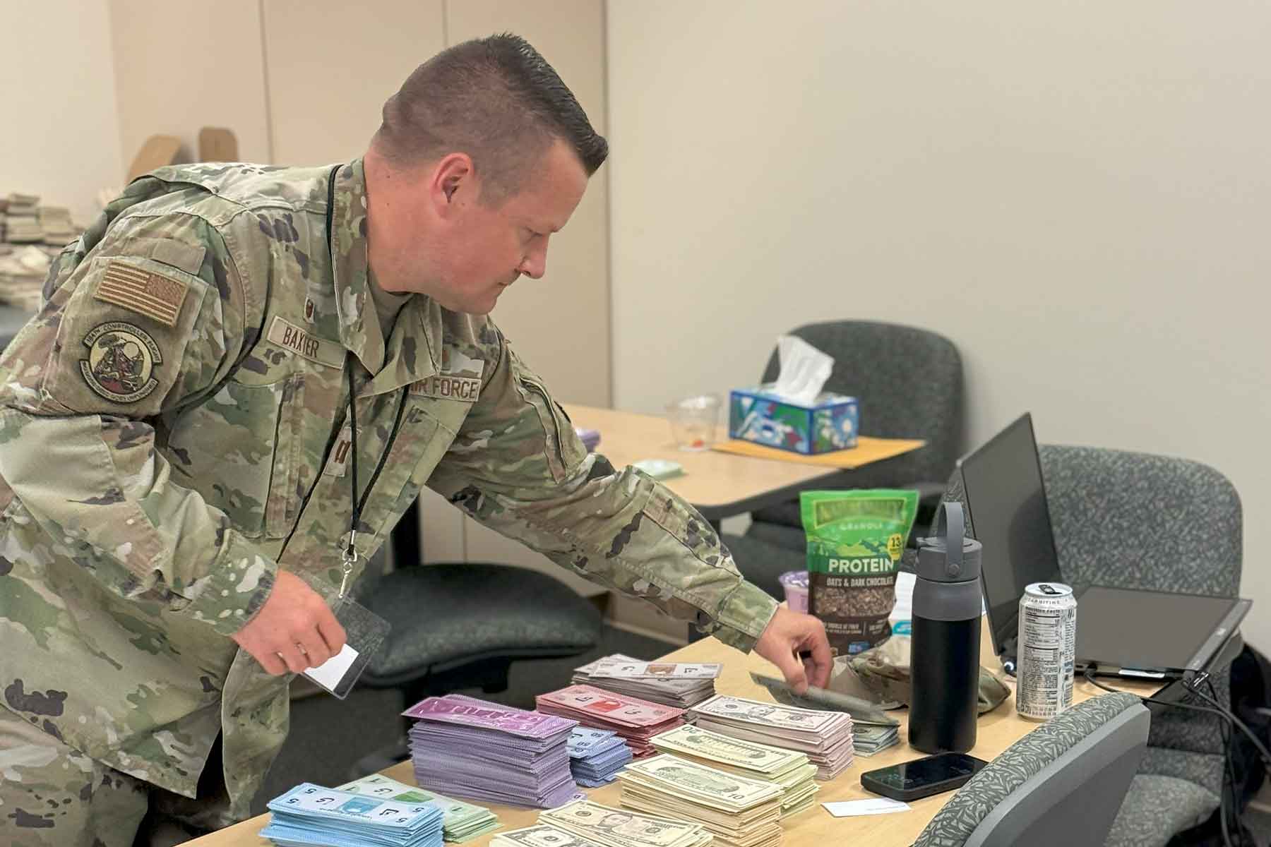 Airmen managed simulated cash using counting machines, processed transactions, and tackled complex budget challenges. They navigated the demanding disbursing agent spreadsheet, interacted with a simulated wing commander and command chief, and operated in a bare-base environment with limited communications designed to push them beyond their comfort zones.